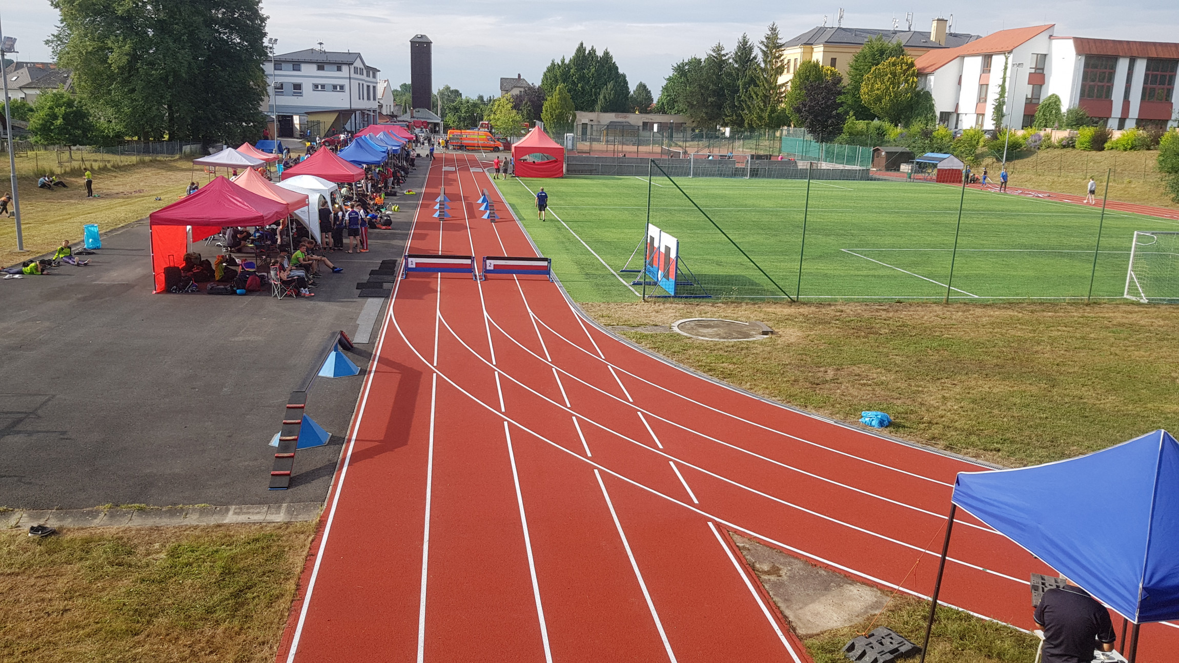 V sobotu 29. 7. 2023 pokračoval Český pohár v běhu na 100 metrů překážek svým 3. kolem v Bludově. Běhalo se na novém tartanu v nádherném sportovním areálu u nově rekonstruované hasičské zbrojnice. My jsme do kategorie středního dorostu nasadili Jakuba Malého a Kateřinu Kořistkovou. Mezi starším dorostem výborně bojoval Jan Matoušek. Právě v této kategorii ovlivnil závod silný déšť. Po prvním kole se vše přerušilo a čekali jsme na lepší počasí. Honza však měl perfektní čas z prvního pokusu a tak se rozhodl neriskovat a do druhého kola na mokrou trať již nenastoupil. Jak se naši závodníci umístili je v tabulce.
