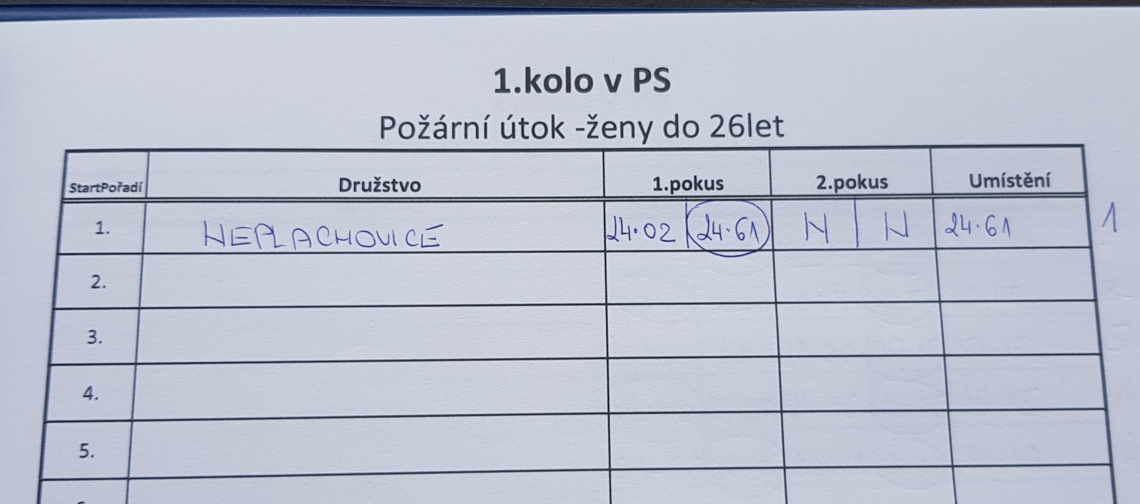 Naši muži v improvizované sestavě s ženou na stroji předvedli dva velmi vyrovnané výkony a zvítězili. A ty naše ženy byly pouze jedny, ale přesto předvedly parádní první pokus. Druhý pokus z důvodu chyby nedokončily. Ale jejich premiérové soutěžní vystoupení v nové, takřka dorostenecké sestavě dopad parádně.